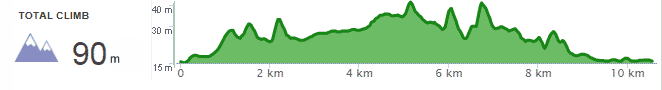 OBS, Kartan och höjdkurvan visar ett varv, sträckningen är delvis ny sedan 2015