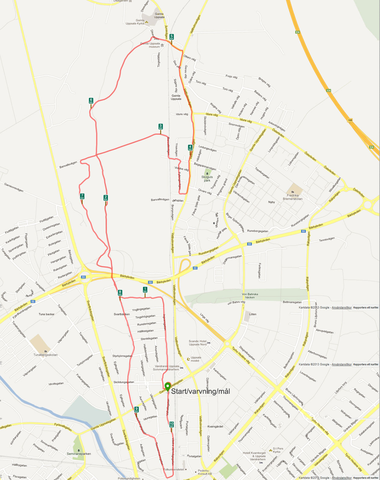 Start och mål kommer vara utanför huset på Valhallagatan 31 i Uppsala.